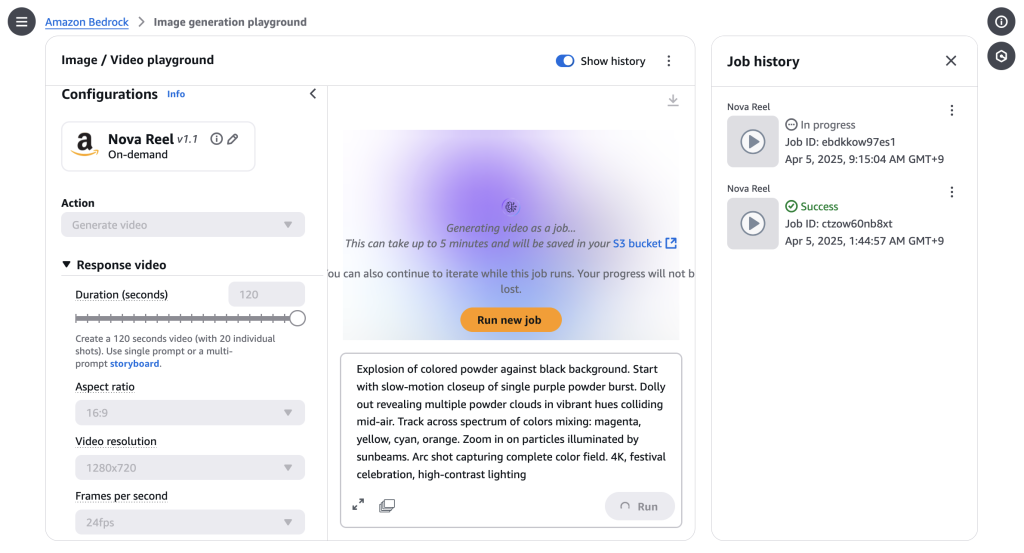 At Re: Invent 2024, we have Andded Amazon Nova Models, the new generation Foundation Models (FMS), included Amazon Nova Reel, a video generation model that creates short videos from text descriptions and optional reference images (“challenge”).